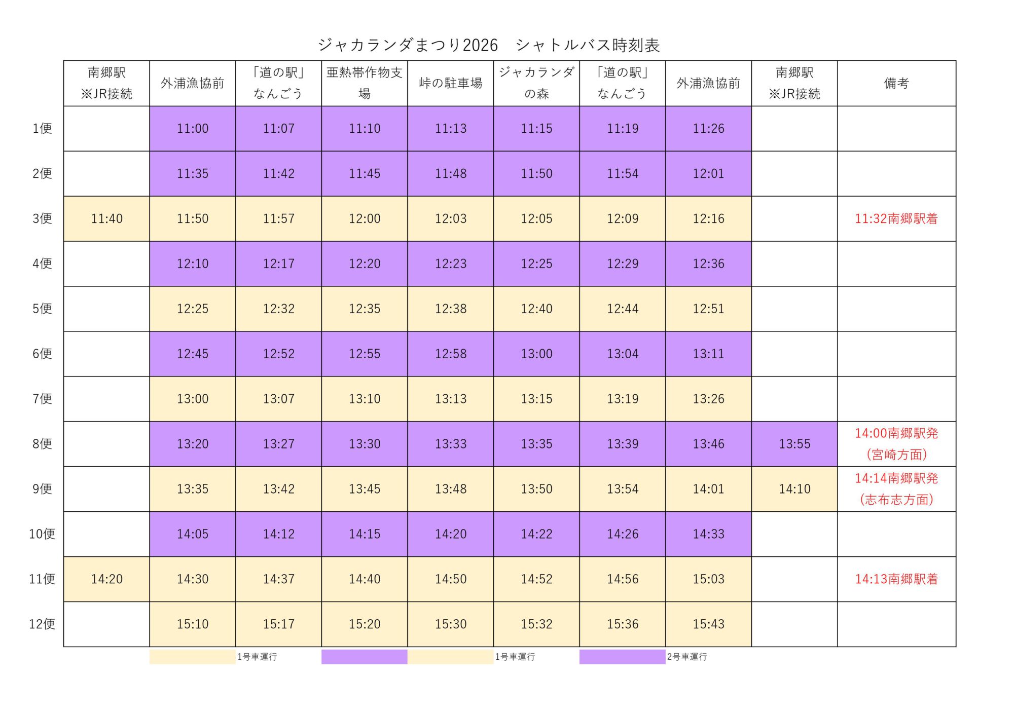 ※一部南郷駅発着便もございます。(JR接続便のみ)