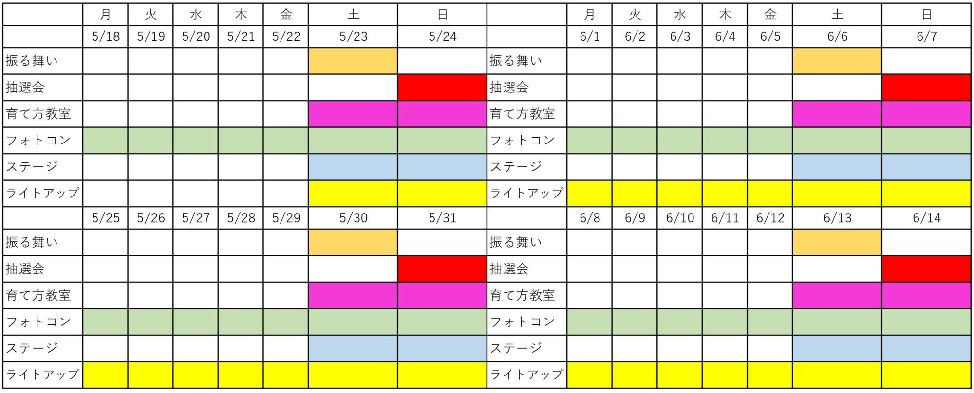 5月24日・30日・31日 6月6日・7日・13日・14日